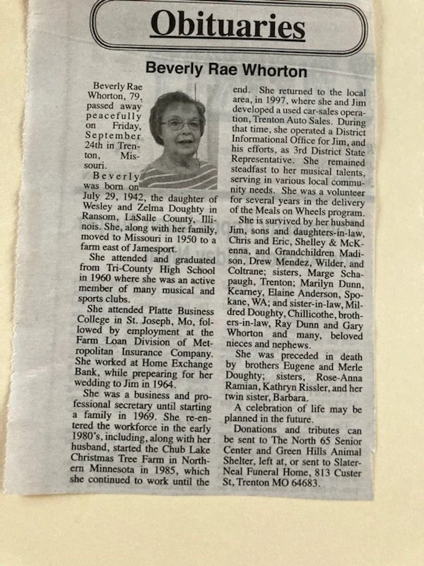 IN LOVING MEMORY OF BEVERLY WHORTON