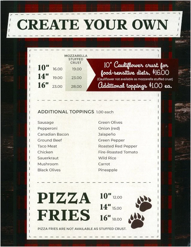 Pizza Menu: Specialty Pizza | Create Your Own Pizza | Pizza Fries | Breakfast Pizza*